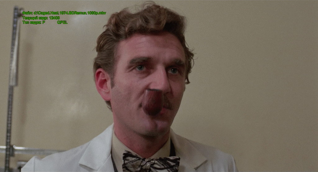 x264 [total]: encoded 115648 frames, 4.82 fps, 6781.98 kb/s=====================================================================GeneralUnique ID : 319110288831574346006238515499599015465 (0xF01267F5021B40E63A844382319E2E29)Complete name : D:\Sbprka\Strast.za.reshetkoj.1974.BDRip.AVC.mkvFormat : MatroskaFormat version : Version 4File size : 4.06 GiBDuration : 1 h 20 minOverall bit rate : 7 232 kb/sFrame rate : 23.976 FPSMovie name : Caged Heat (1974) BDRip-AVC_vitolinformEncoded date : 2023-07-08 05:08:20 UTCWriting application : mkvmerge v76.0 ('Celebration') 64-bitWriting library : libebml v1.4.4 + libmatroska v1.7.1Attachments : poster.jpg / log.log